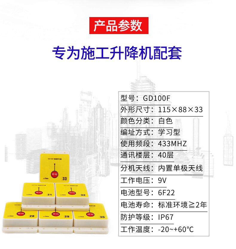 GD100呼叫系統(tǒng)有2個(gè)主機(jī)和多個(gè)呼叫器分機(jī)(最多40個(gè))組成。